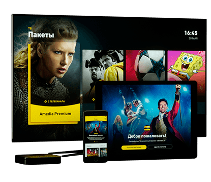 интерактивное телевидение нового поколения. Подключайте телевидение бесплатно и смотрите до 300 популярных телеканалов, новинки кино, любимые фильмы и мультфильмы на разных устройствах